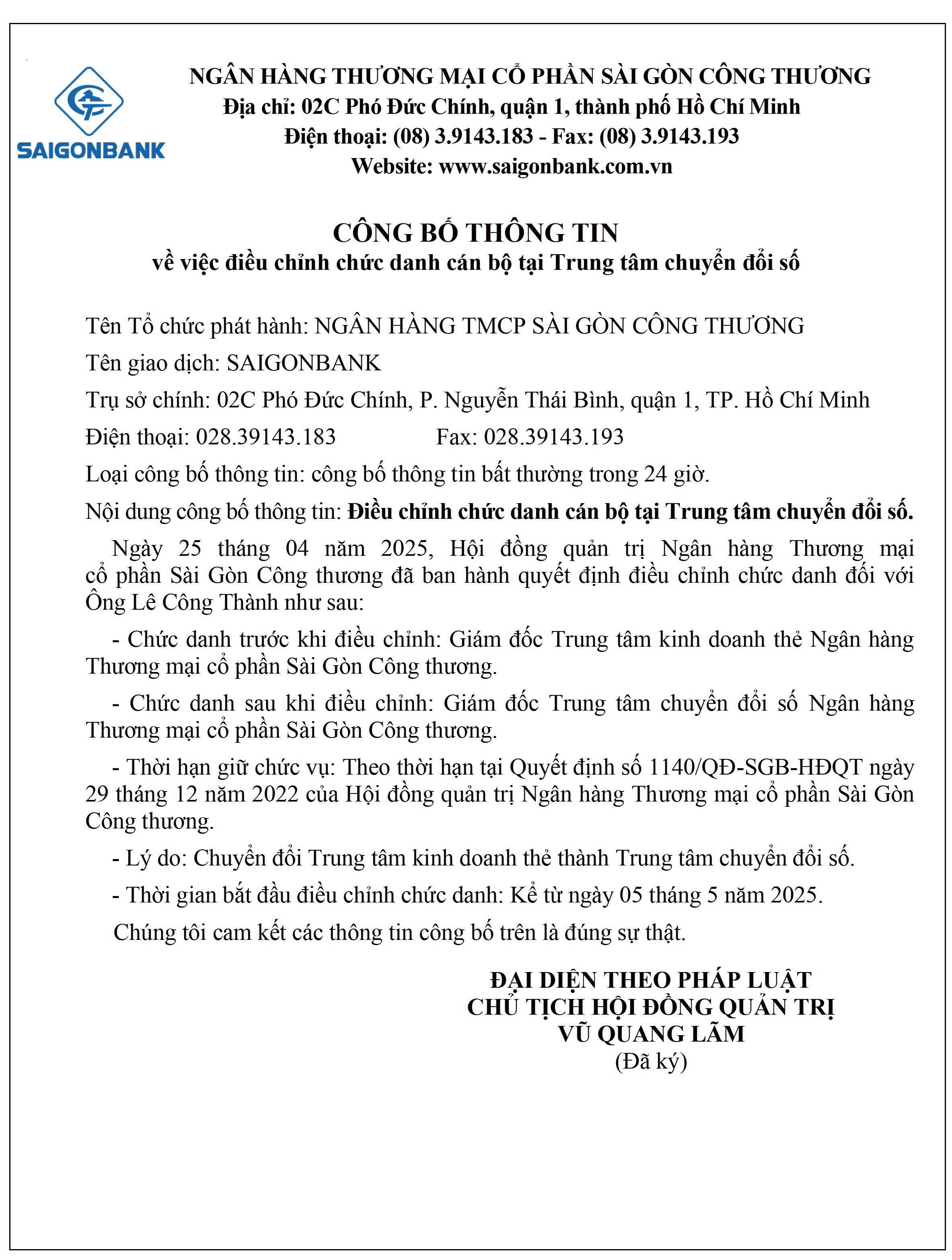 NGÂN HÀNG TMCP SÀI GÒN CÔNG THƯƠNG