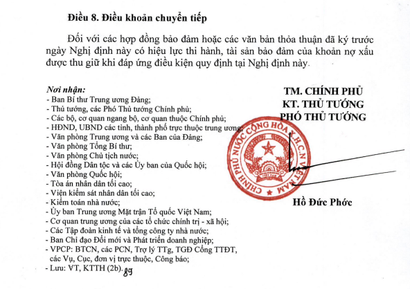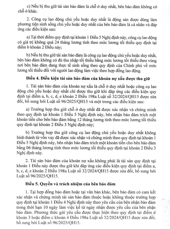 Nghị Định 304 Quy định điều kiện tài sản bảo đảm của khoản nợ xấu được thu giữ