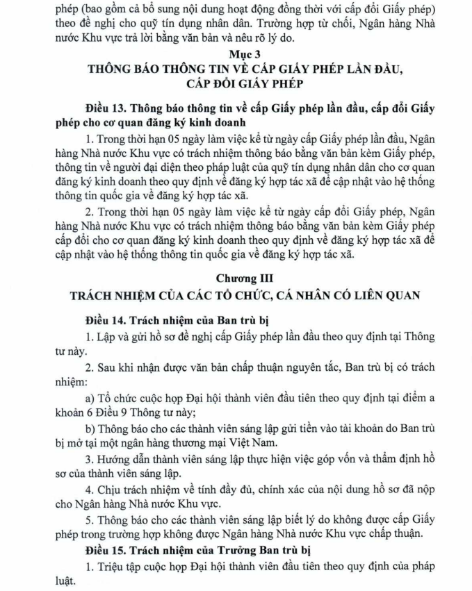 Trang chủTin tứcPhổ biến văn bản quy phạm pháp luậtThông tư 01 Quy định về cấp Giấy phép lần đầu, cấp đổi Giấy phép của quỹ tín dụng nhân dân