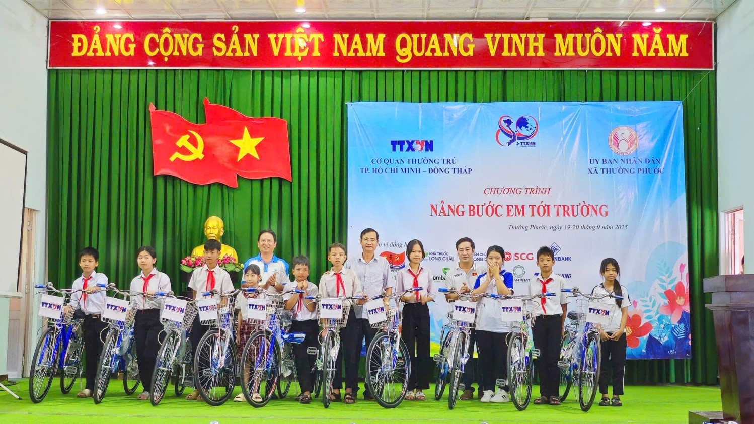 Sáng ngày 20/9/2025, tại xã Thường Phước, tỉnh Đồng Tháp, SAIGONBANK đã phối hợp với Cơ quan Thông tấn xã Việt Nam (TTXVN) và địa phương tổ chức trao tặng 10 chiếc xe đạp cho các em học sinh có hoàn cảnh khó khăn, vượt khó vươn lên trong học tập. Đây là một trong những hoạt động an sinh xã hội thường xuyên của SAIGONBANK, thể hiện tinh thần trách nhiệm và sự đồng hành cùng cộng đồng.