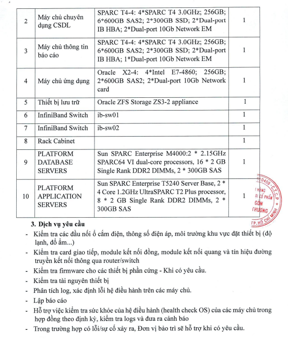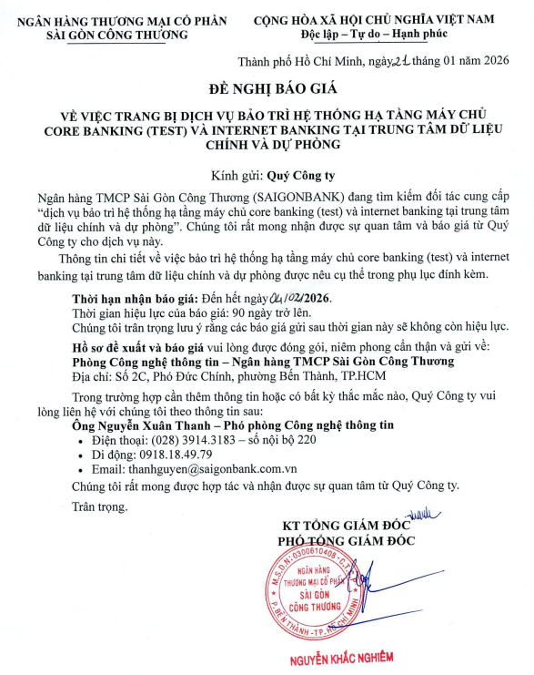 ĐỀ NGHỊ BÁO GIÁ VỀ VIỆC TRANG BỊ BẢO TRÌ HỆ THỐNG HẠ TẦNG MÁY CHỦ CORE BANKING (TEST) VÀ INTERNET BANKING TẠI TẠI TRUNG TÂM DỮ LIỆU CHÍNH VÀ DỰ PHÒNG