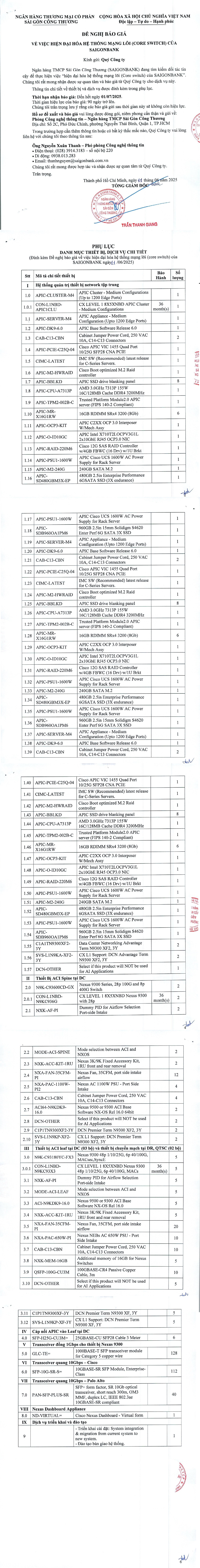 ĐỀ NGHỊ BÁO GIÁ VỀ VIỆC HIỆN ĐẠI HÓA HỆ THỐNG MẠNG LÕI (CORE SWITCH) CỦA SAIGONBANK