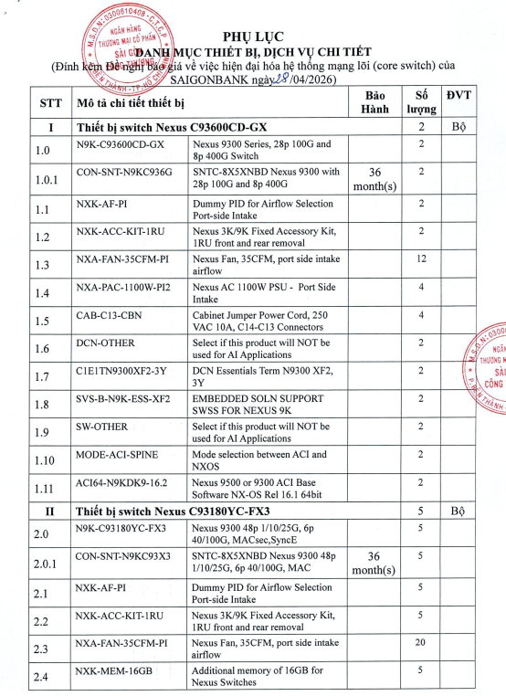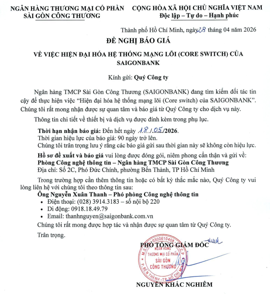 ĐỀ NGHỊ BÁO GIÁ VỀ VIỆC HIỆN ĐẠI HÓA HỆ THỐNG MẠNG LÕI (CORE SWITCH) CỦA SAIGONBANK