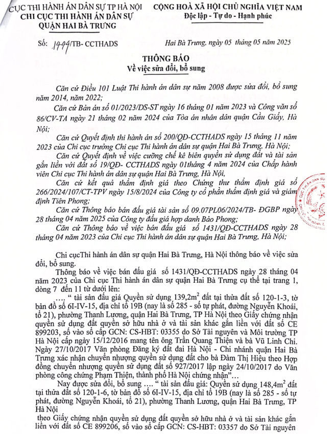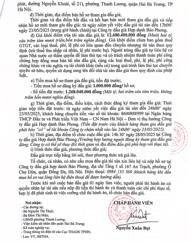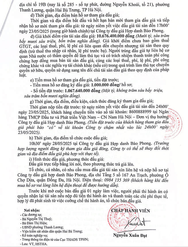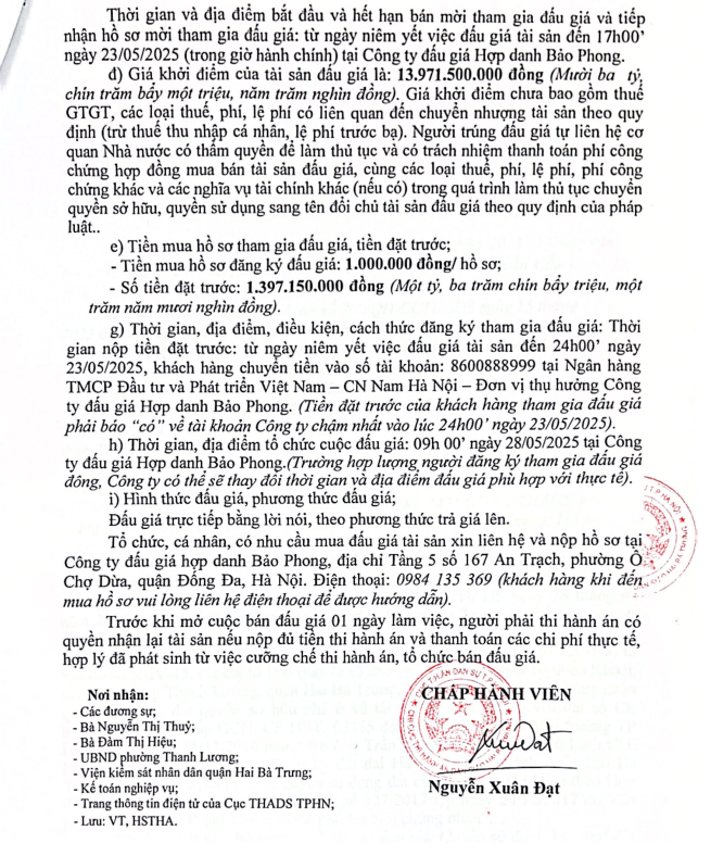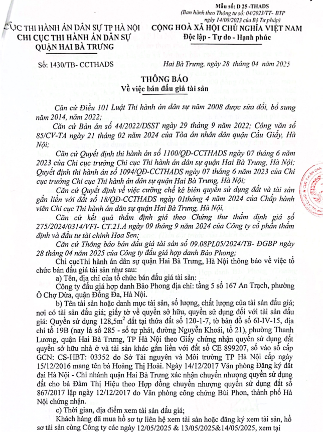 THÔNG BÁO BÁN ĐẤU GIÁ TÀI SẢN TẠI CN CẦU GIẤY