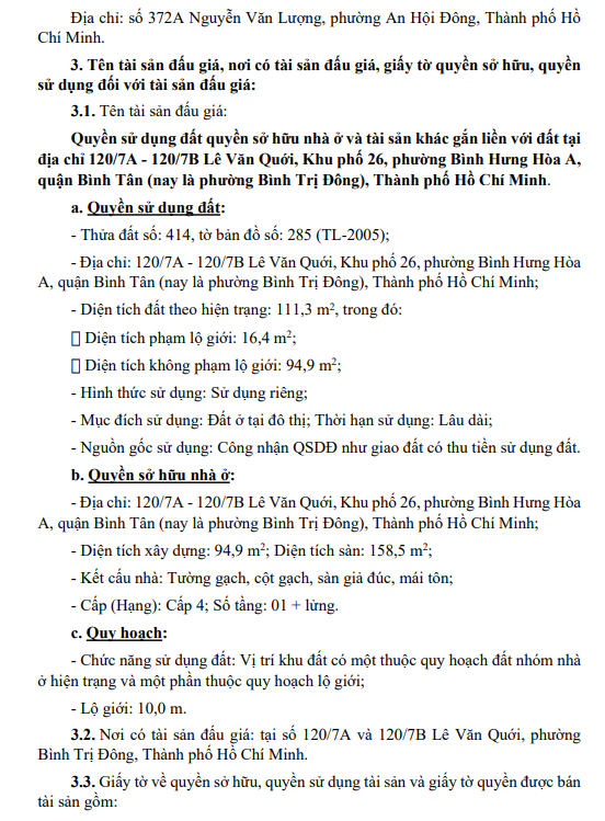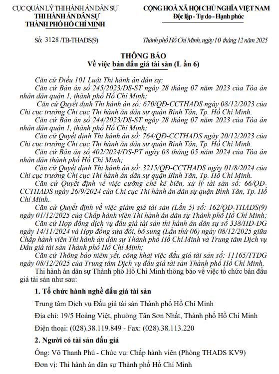 THÔNG BÁO BÁN ĐẤU GIÁ TÀI SẢN TẠI CHI NHÁNH BÀ CHIỂU