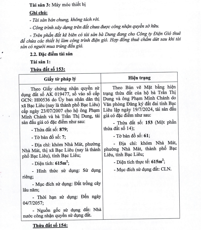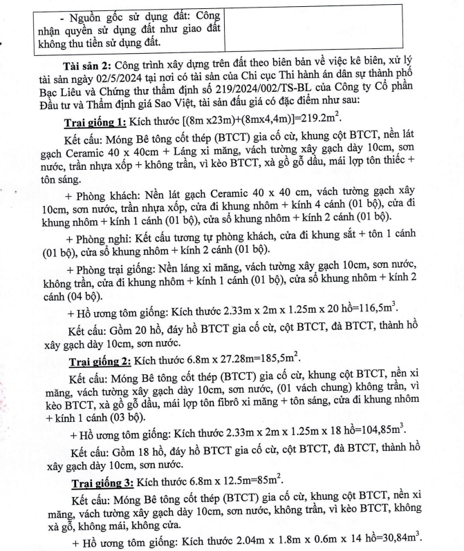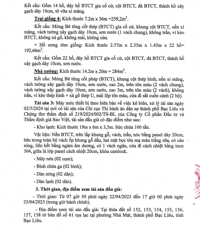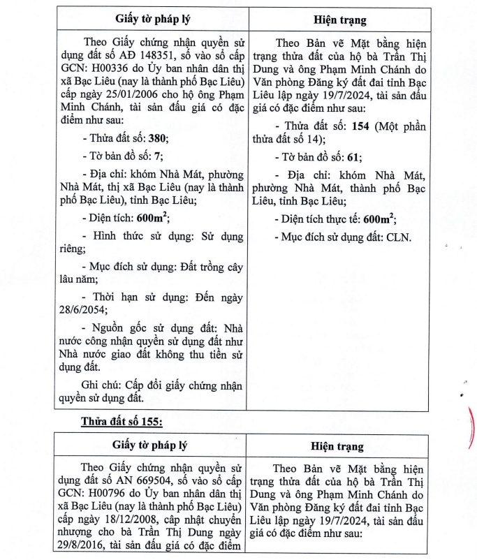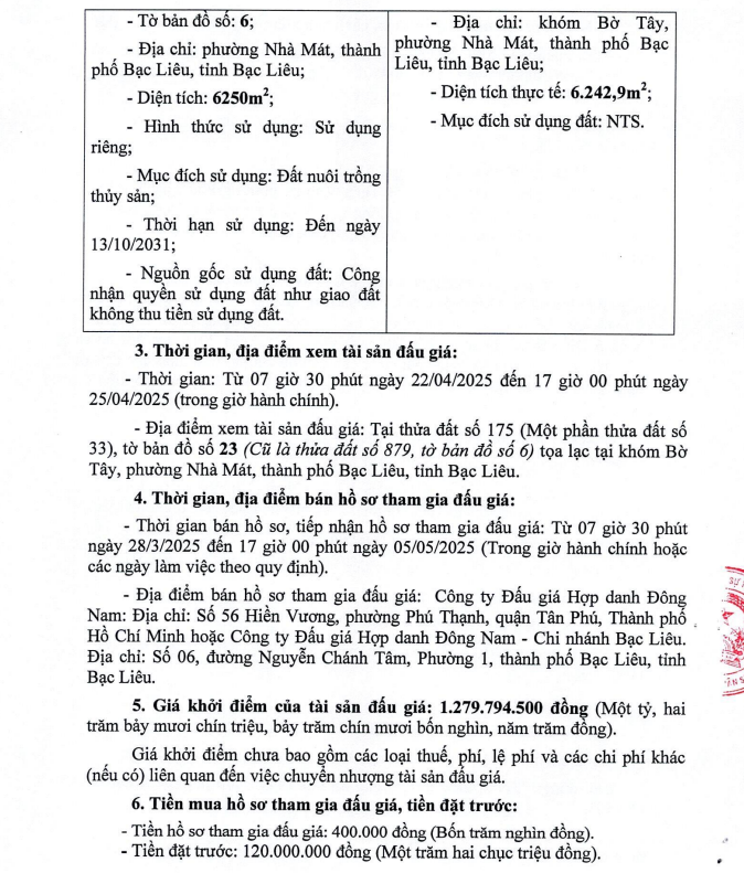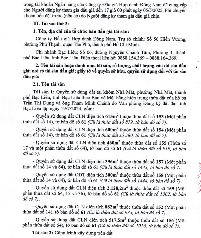 THÔNG BÁO BÁN ĐẤU GIÁ TÀI SẢN TẠI CHI NHÁNH BẠC LIÊU