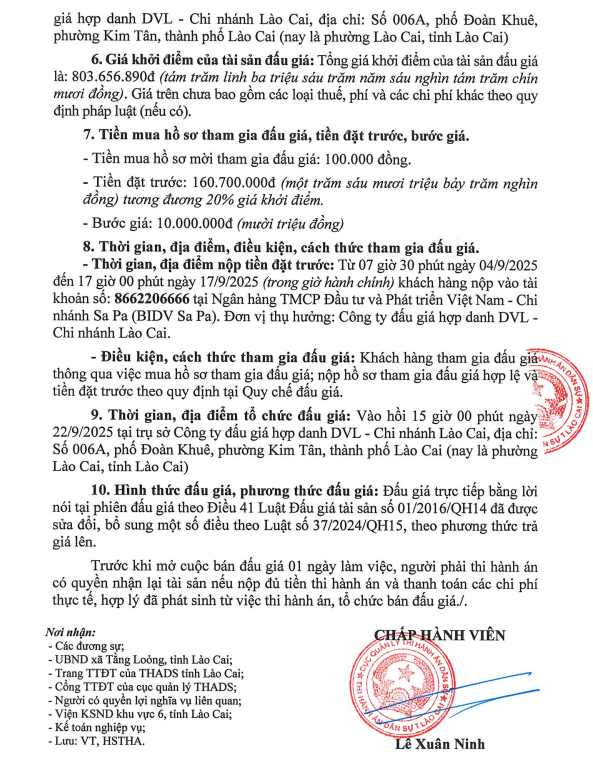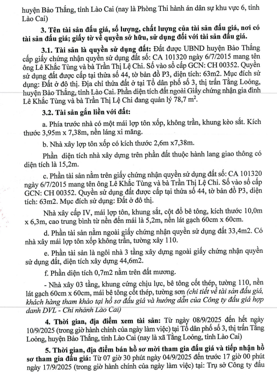 THÔNG BÁO BÁN ĐẤU GIÁ TÀI SẢN TẠI CHI NHÁNH LÀO CAI