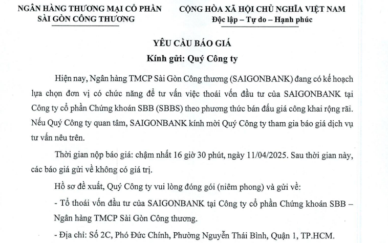 YÊU CẦU BÁO GIÁ