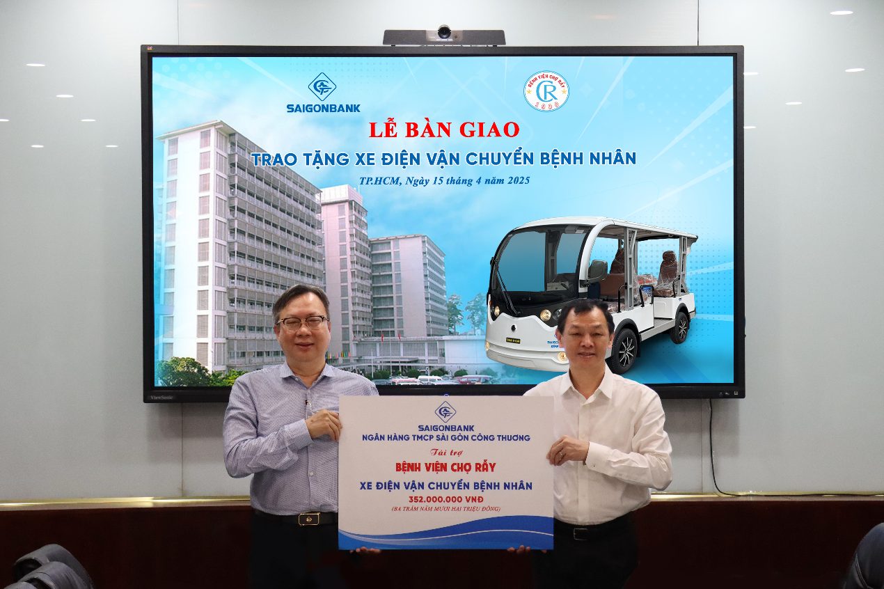 Ngày 15/4/2025, Ngân hàng Thương mại Cổ phần Sài Gòn Công thương (SAIGONBANK) đã trao tặng một xe điện chở bệnh nhân TRAN E-CAR trị giá 352 triệu đồng cho Bệnh viện Chợ Rẫy. Đây là hoạt động nằm trong chuỗi chương trình trách nhiệm xã hội của SAIGONBANK, nhằm hỗ trợ công tác chăm sóc sức khỏe cộng đồng và nâng cao chất lượng phục vụ bệnh nhân tại các bệnh viện tuyến đầu.