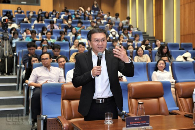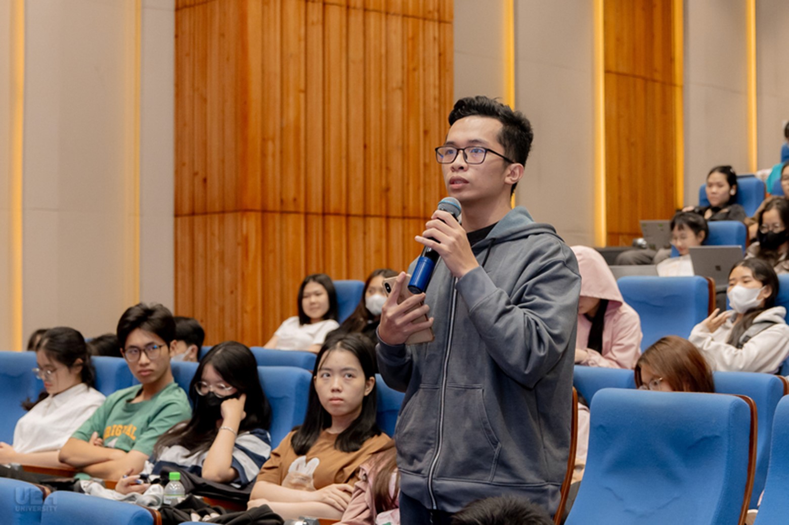 Sinh viên UEH gửi lời cảm ơn và đặt câu hỏi cho Diễn giả Thuỵ Mai tại Talkshow