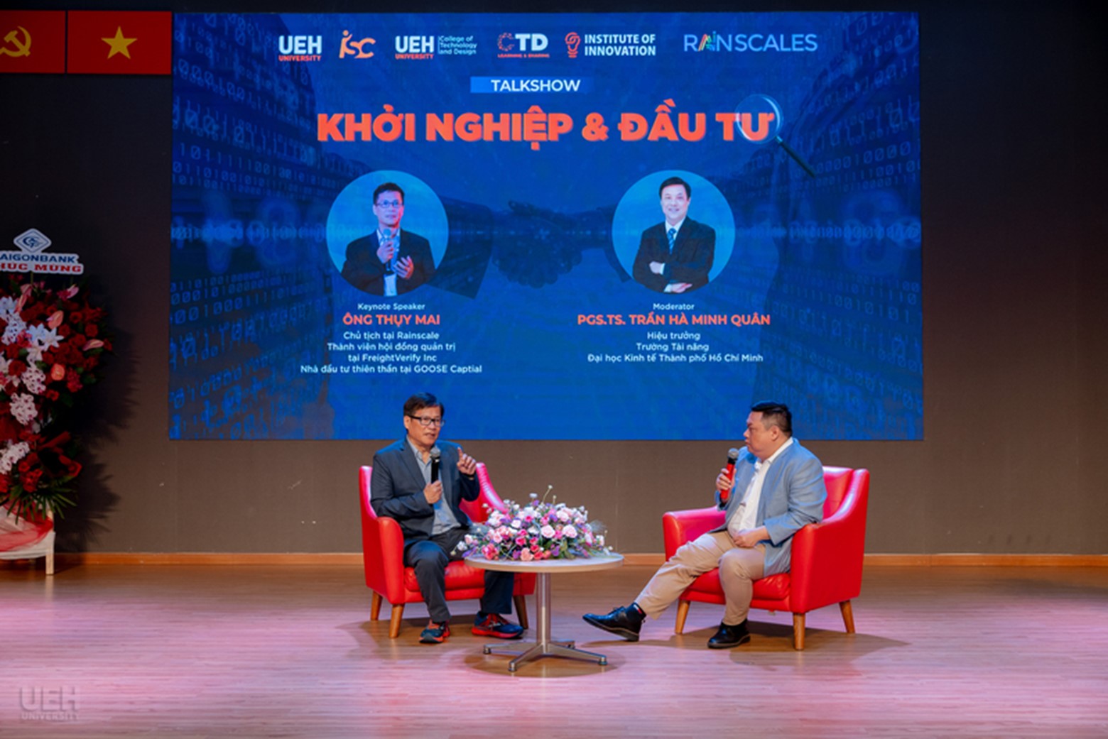 Sáng ngày 24/05/2025, tại Đại học Kinh tế Thành phố Hồ Chí Minh (UEH), Trường Công nghệ và Thiết kế UEH (CTD), Viện Đổi mới sáng tạo UEH (UII) và Trung tâm Ươm tạo Công nghệ và Hỗ trợ Đổi mới sáng tạo (ISC) đã đồng tổ chức thành công Talkshow “Khởi nghiệp và Đầu tư”. Đây là sự kiện tiếp theo nằm trong khuôn khổ chuỗi chương trình học thuật CTD Learning & Sharing - Một sáng kiến học thuật của CTD nhằm thúc đẩy chia sẻ tri thức, kết nối chuyên gia, doanh nghiệp và cộng đồng, qua đó nâng cao năng lực nghiên cứu cho cộng đồng và tạo ra các giá trị thiết thực cho sự phát triển bền vững.