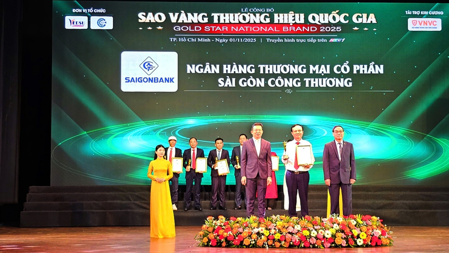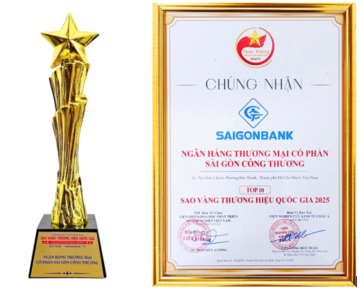Sáng ngày 01/11/2025, tại Nhà hát Bến Thành (TP. Hồ Chí Minh), Ngân hàng TMCP Sài Gòn Công thương (SAIGONBANK) vinh dự được trao tặng Giấy chứng nhận TOP 10 “Sao Vàng Thương Hiệu Quốc Gia 2025” – giải thưởng do Liên hiệp Khoa học Phát triển Doanh nghiệp Việt Nam phối hợp với Viện Nghiên cứu Kinh tế Châu Á tổ chức, được truyền hình trực tiếp trên kênh HTV1.