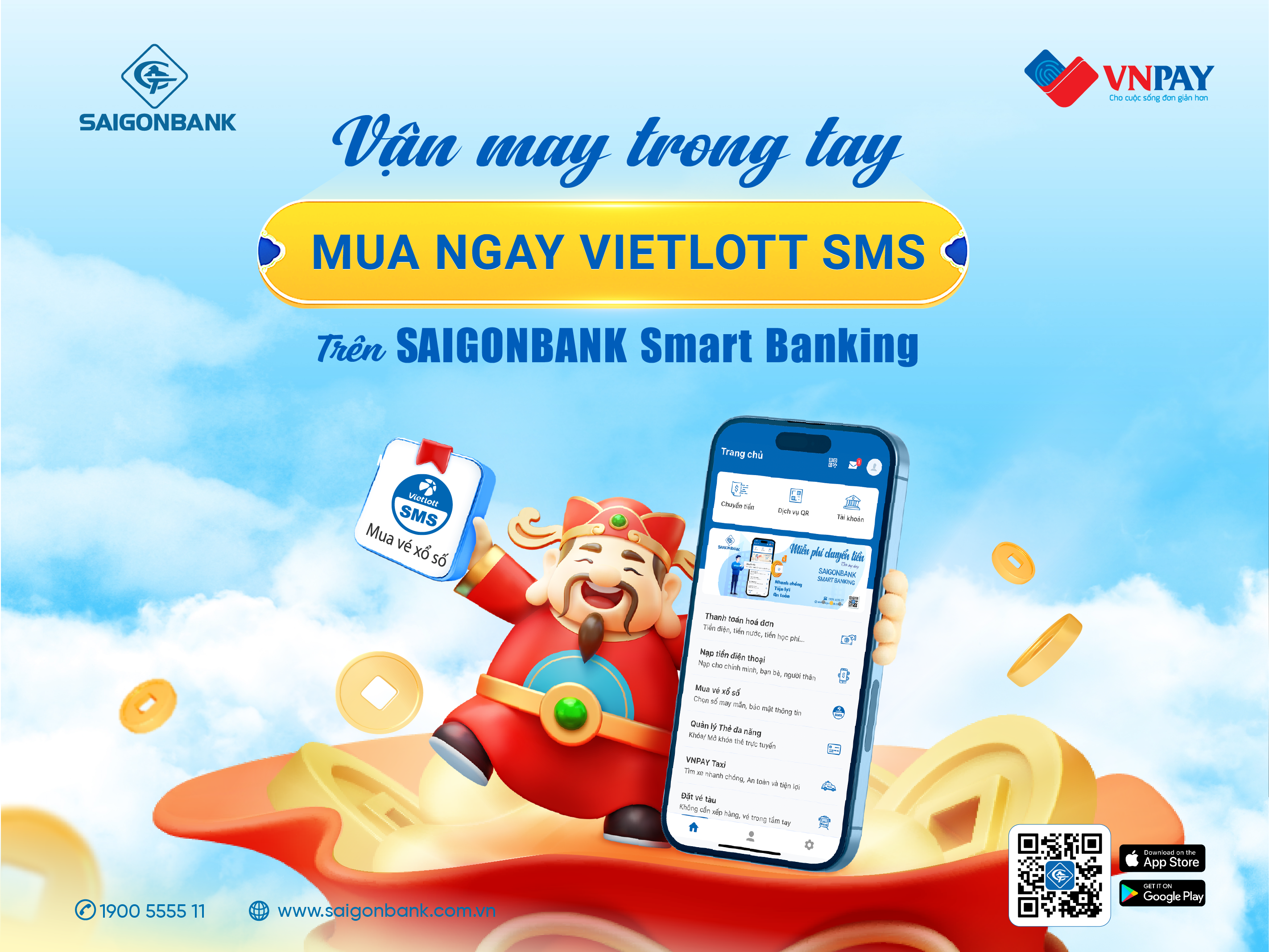 Dịch vụ "Mua vé xổ số Vietlott SMS" là kết quả hợp tác giữa SAIGONBANK và Công ty Cổ phần Giải pháp Thanh toán Việt Nam (VNPAY), mang đến thêm một tiện ích số hiện đại, phù hợp với xu hướng tiêu dùng thông minh và không dùng tiền mặt.