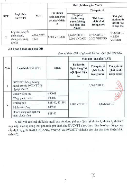 PHỤ LỤC BIỂU PHÍ DỊCH VỤ ÁP DỤNG ĐỐI VỚI ĐƠN VỊ CHẤP NHẬN THANH TOÁN