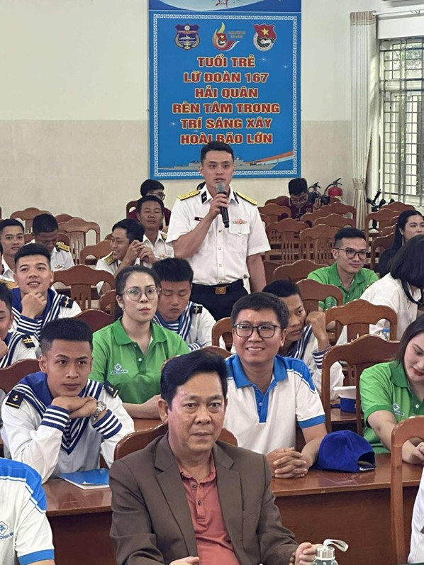 Chiến sĩ hải quân Lữ đoàn 167 giao lưu với các thí sinh "Chuông vàng vọng cổ"