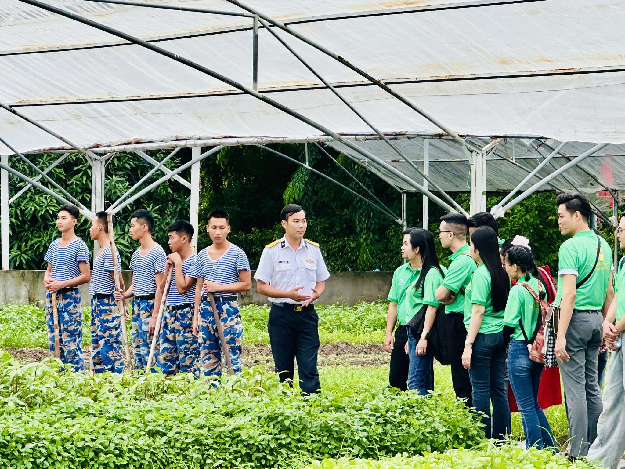 Các thí sinh tham quan vườn rau do chiến sĩ Lữ đoàn 167 trồng