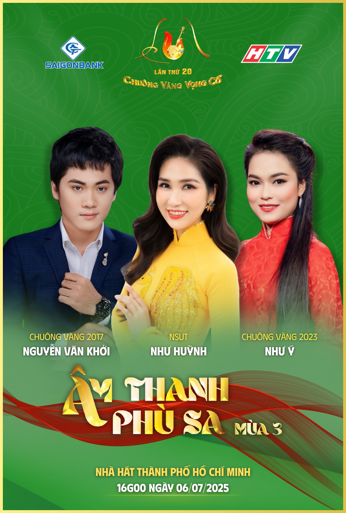 Âm thanh phù sa mùa 3 - chương trình đồng hành cùng cuộc thi "Chuông vàng vọng cổ" lần thứ 20 - sẽ khép lại hành trình “chu du” tại TP.HCM. Chương trình diễn ra vào lúc 16g ngày 6/7/2025 tại Nhà hát TP.HCM.