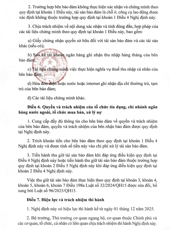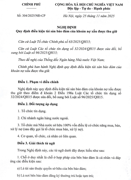 Nghị Định 304 Quy định điều kiện tài sản bảo đảm của khoản nợ xấu được thu giữ