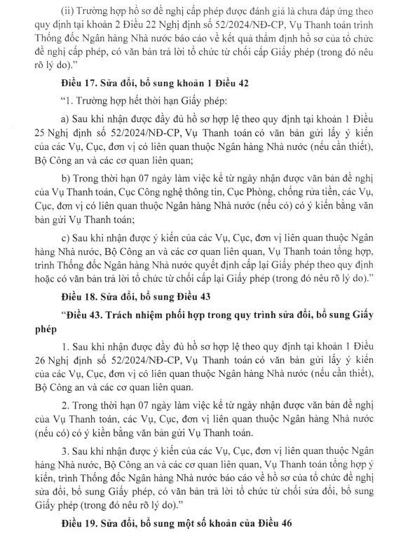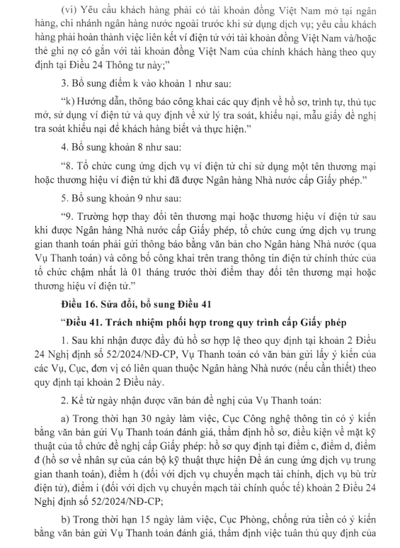 Thông tư 41 Sửa đổi, bổ sung một số điều của Thông tư 40/2024/TT-NHNN quy định về hoạt động cung ứng dịch vụ trung gian thanh toán