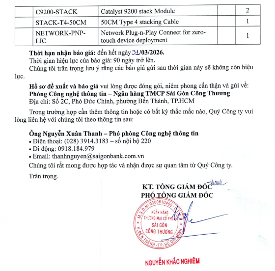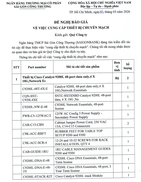 ĐỀ NGHỊ BÁO GIÁ VỀ VIỆC CUNG CẤP THIẾT BỊ CHUYỂN MẠCH