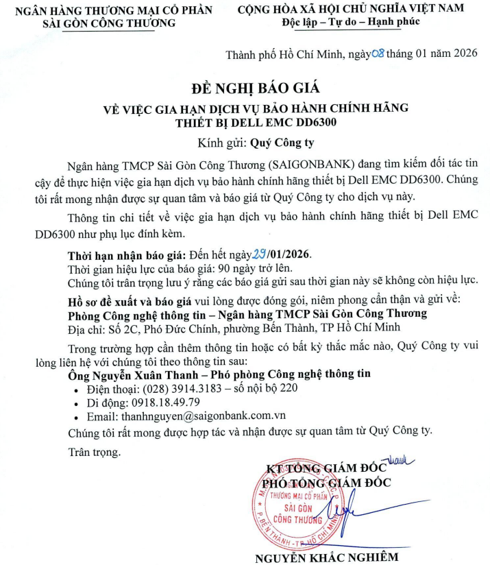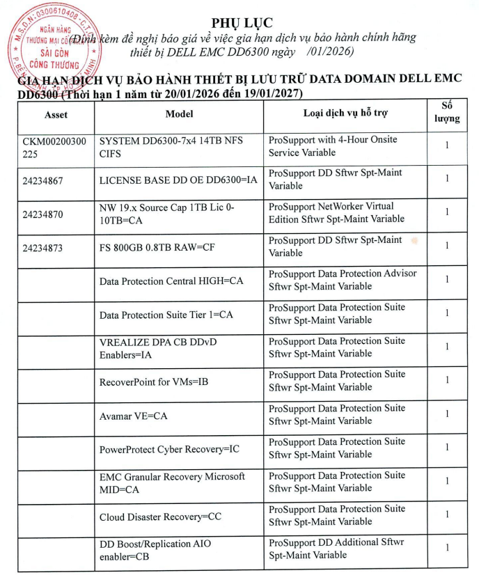 ĐỀ NGHỊ BÁO GIÁ VỀ VIỆC GIA HẠN DỊCH VỤ BẢO HÀNH CHÍNH HÃNG THIẾT BỊ DELL EMC DD6300