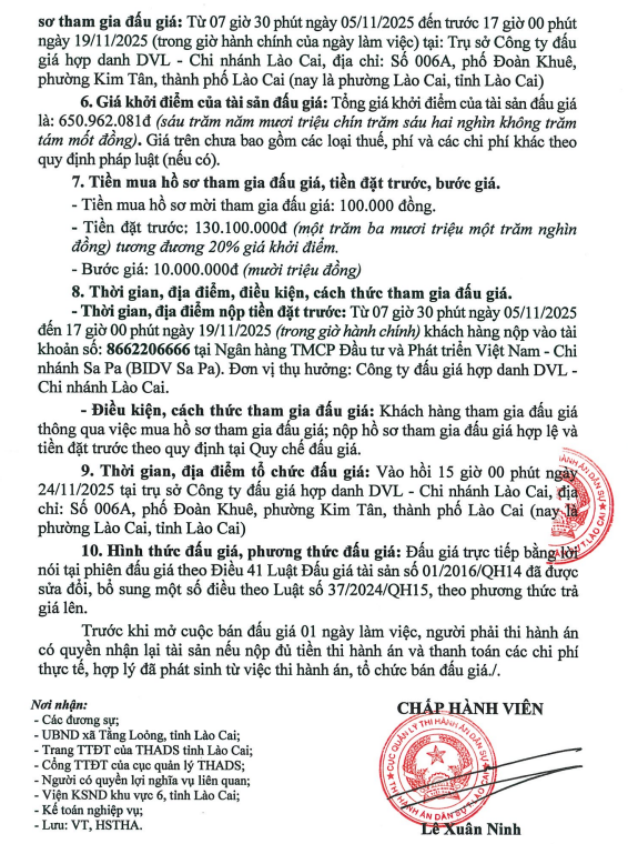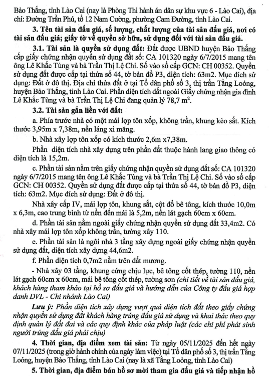 THÔNG BÁO BÁN ĐẤU GIÁ TÀI SẢN TẠI CHI NHÁNH LÀO CAI