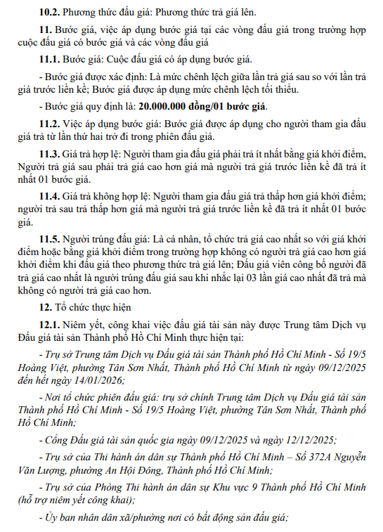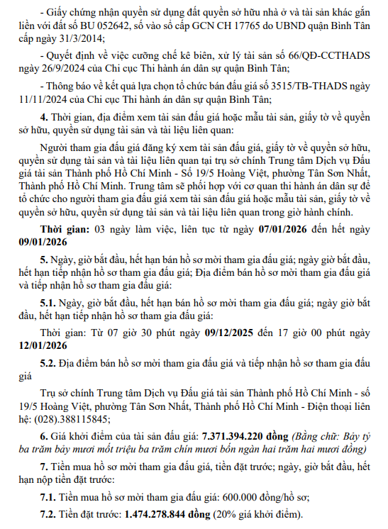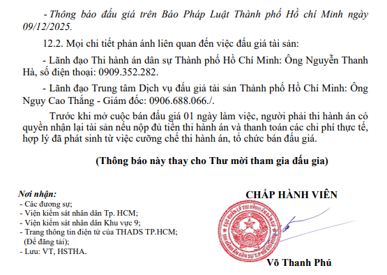 THÔNG BÁO BÁN ĐẤU GIÁ TÀI SẢN TẠI CHI NHÁNH BÀ CHIỂU