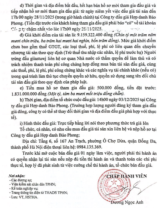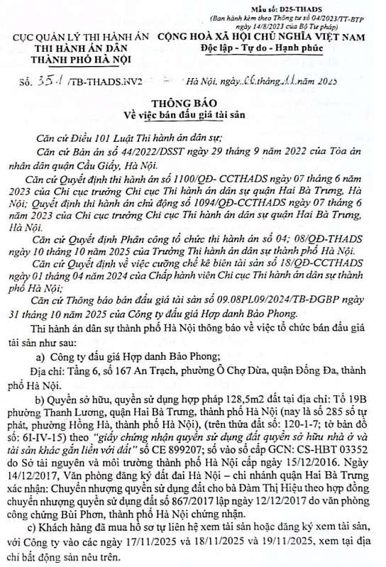 THÔNG BÁO BÁN ĐẤU GIÁ TÀI SẢN TẠI CN CẦU GIẤY