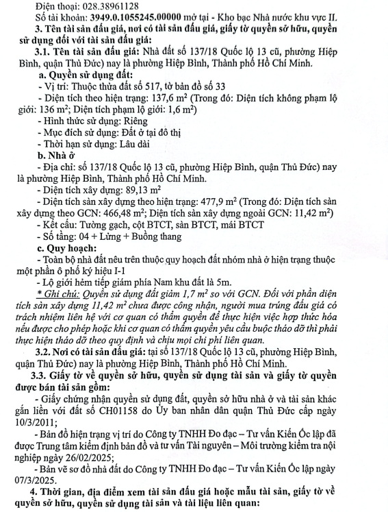 THÔNG BÁO VỀ VIỆC BÁN ĐẤU GIÁ TÀI SẢN TẠI CHI NHÁNH KHÁNH HỘI