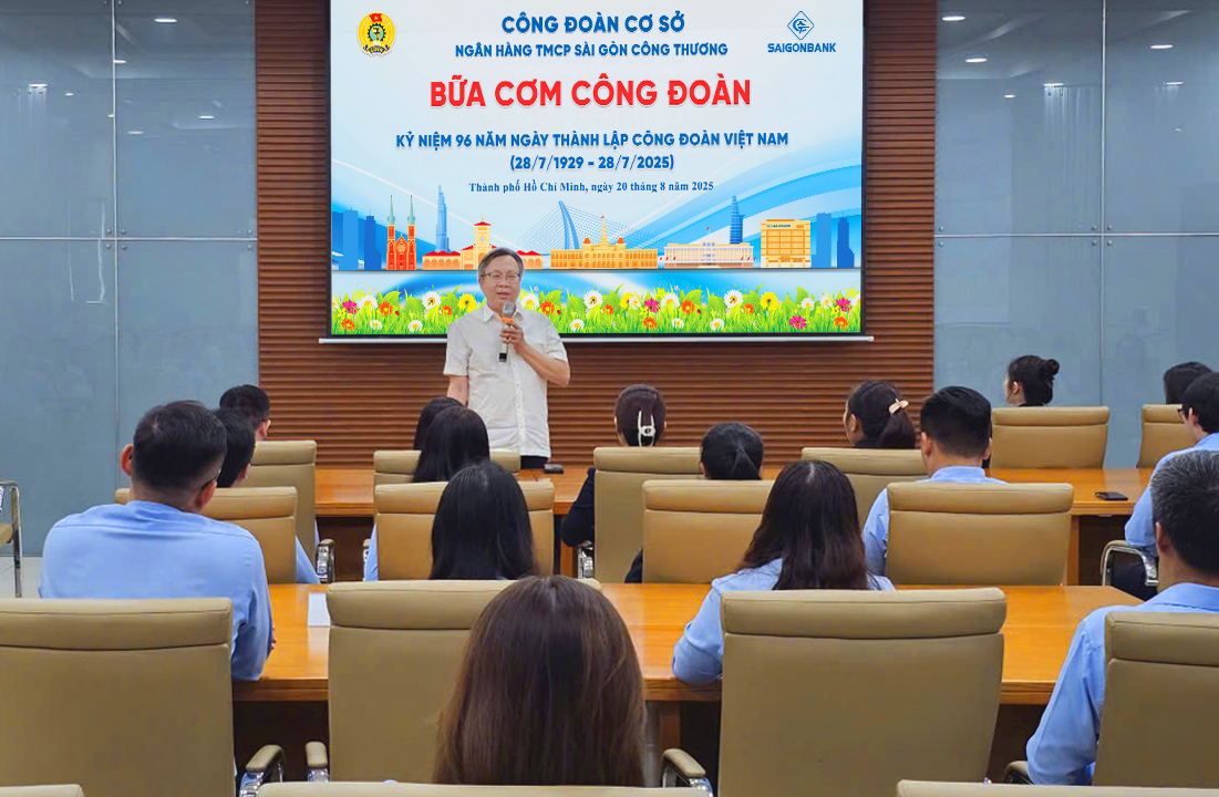 Trưa ngày 20/8/2025 tại trụ sở SAIGONBANK số 2C Phó Đức Chính, Phường Bến Thành, TP. Hồ Chí Minh, Đồng chí Bí Thư Đảng Ủy Vũ Quang Lãm, cùng các Đồng chí Lãnh đạo trong Ban điều hành, đại diện Ban chấp hành Công đoàn và công đoàn viên, người lao động tại Hội sở đại diện cho gần 1.500 CBNV đã đến tham dự chương trình “Bữa cơm công đoàn” này. Phát biểu tại chương trình, Đồng chí Bí Thư Đảng Ủy cho biết đây là hoạt động có nhiều ý nghĩa, là dịp để Lãnh đạo SAIGONBANK gặp gỡ, động viên đoàn viên, người lao động, tạo nên bầu không khí đoàn kết, chia sẻ, qua đó tạo dựng niềm tin, sự gắn bó của người lao động đối với Ngân hàng nói chung và SAIGOBANK nói riêng, quyết tâm cùng nhau hoàn thành các chỉ tiêu kế hoạch mà Đại Hội cổ đông đã giao. Thay mặt toàn thể công đoàn viên, người lao động, Đại diện Ban chấp hành công đoàn đã gửi lời cảm ơn đến Đảng Ủy, Lãnh đạo SAIGONBANK đã quan tâm, tạo điều kiện tổ chức “Bữa cơm Công đoàn” đầm ấm cho toàn thể đoàn viên, người lao động, “Bữa cơm Công đoàn” là cơ hội để đoàn viên, người lao động chia sẻ, từ đó giảm căng thẳng, mệt mỏi sau giờ làm việc để có thêm quyết tâm hoàn thành tốt nhiệm vụ chuyên môn được giao.