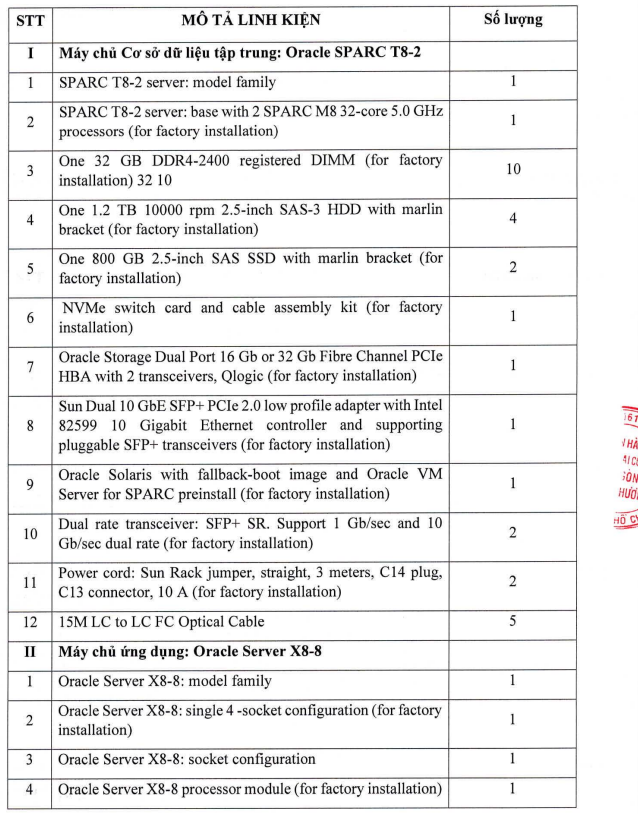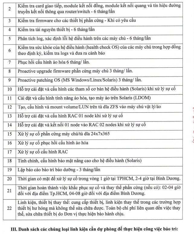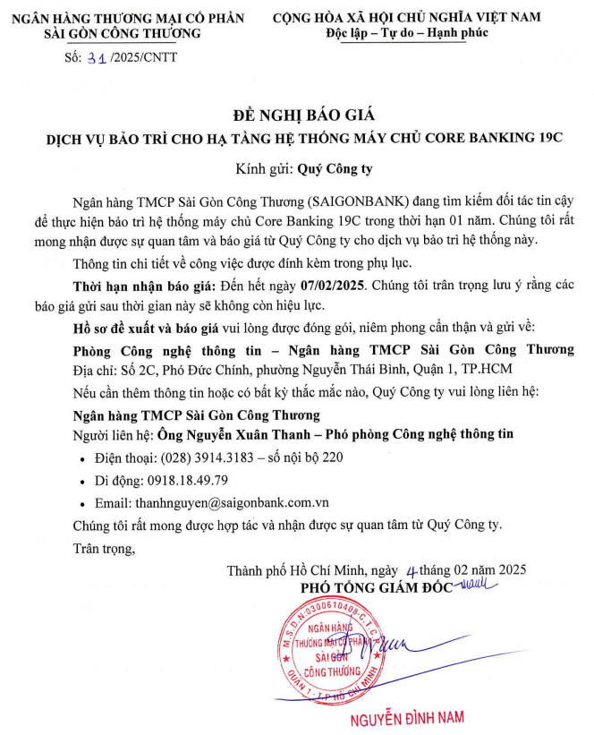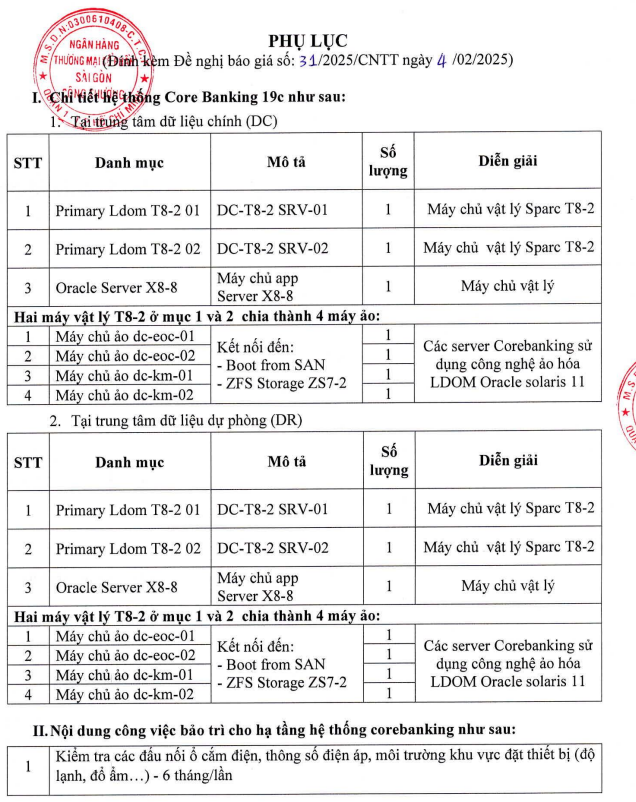 ĐỀ NGHỊ BÁO GIÁ DỊCH VỤ BẢO TRÌ HẠ TẦNG HỆ THỐNG MÁY CHỦ CORE BANKING 19C