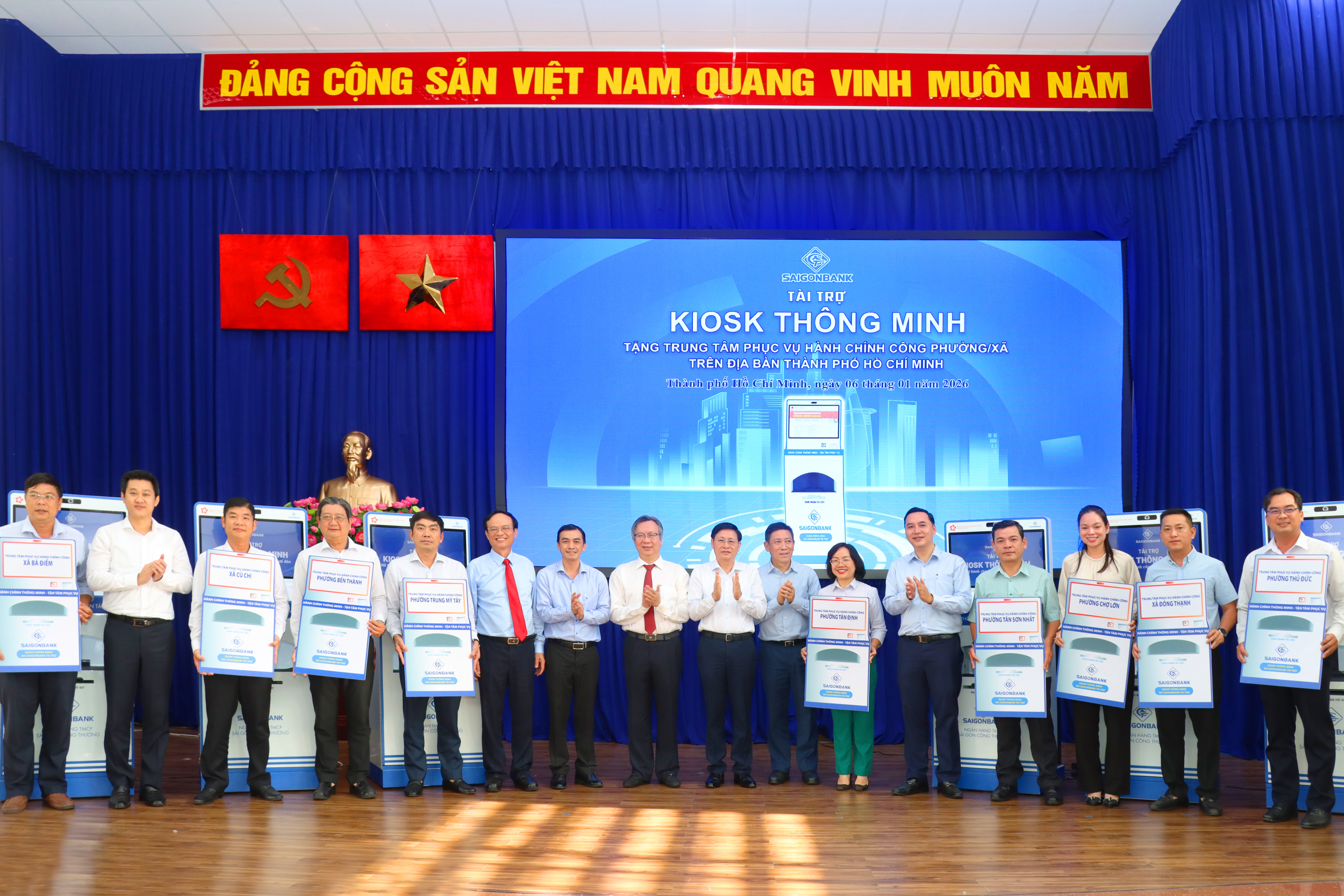 Tại buổi lễ, SAIGONBANK đã chính thức trao tặng 11 kiosk thông minh cho 11 Trung tâm Phục vụ hành chính công tại các phường, xã trên địa bàn TP. Hồ Chí Minh theo danh sách đã được phê duyệt. Các kiosk được trang bị nhiều tính năng hiện đại như tra cứu thủ tục hành chính, lấy số thứ tự tự động, hỗ trợ hướng dẫn hồ sơ, kết nối các dịch vụ số, góp phần tối ưu hóa quy trình tiếp nhận và giải quyết thủ tục cho người dân.