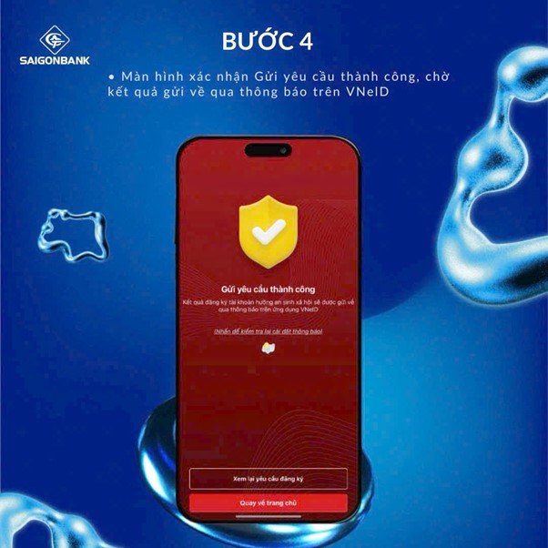 Khách hàng có thể nhanh chóng liên kết tài khoản an sinh xã hội trên ứng dụng VneID và tài khoản SAIGONBANK qua các bước đơn giản.