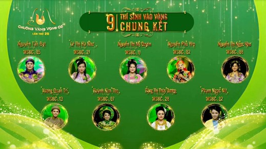 Trải qua nhiều vòng thi Tuyển chọn hồi hộp và kịch tính, cùng với sự yêu thương và ủng hộ của quý vị khán giả mộ điệu, 9 gương mặt đầy triển vọng đã xuất sắc ghi tên mình vào Vòng chung kết cuộc thi Chuông Vàng Vọng Cổ lần thứ 20 – năm 2025.
