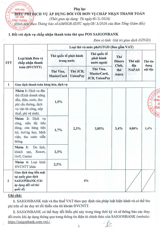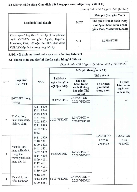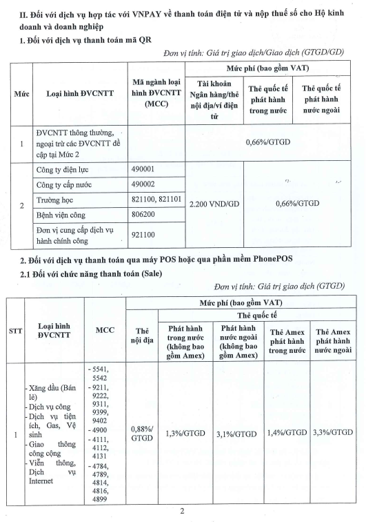 PHỤ LỤC BIỂU PHÍ DỊCH VỤ ÁP DỤNG ĐỐI VỚI ĐƠN VỊ CHẤP NHẬN THANH TOÁN
