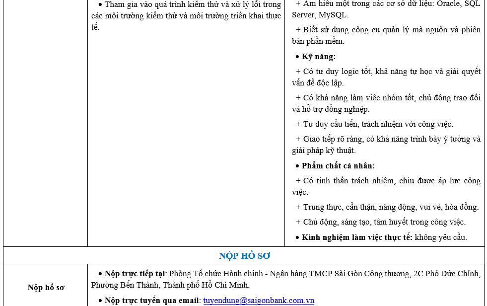 SAIGONBANK TUYỂN DỤNG NHÂN SỰ